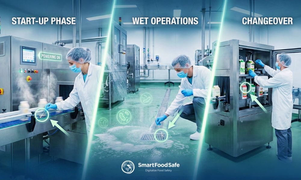 - Trigger sampling around start-ups, changeovers, post-maintenance, wet operations, and corrective actions
